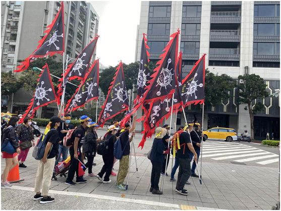 “秋斗”游行今日下午1点在凯达格兰大道登场,民众已开始集结。图自中时新闻网